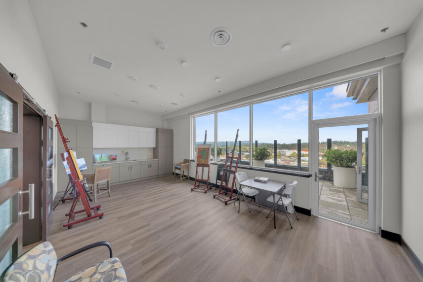 Life at Chartwell Vista extends far beyond your suite. Club fees include resort-style amenities on the top floor with stunning 360° views. Highlights include a full-service restaurant, tea room, rooftop terrace with fireplace and BBQs, lounges, fitness centre, art studio, library, hair salon, and theatre. Concierge service, daily breakfast, afternoon tea, community activities, and 24/7 emergency response provide peace of mind and enrichment.