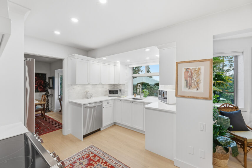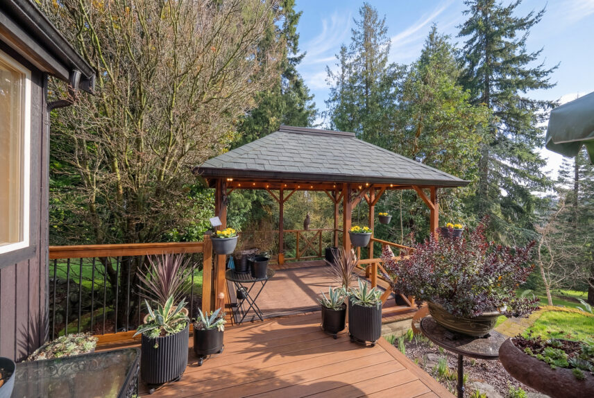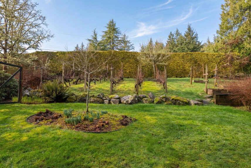 Spectacularly renovated! Thoughtfully redesigned 5 bed 4 bath home with an open floor plan, vaulted ceilings, and white oak flooring throughout. The custom kitchen flows into the main living area anchored by a cozy wood fireplace. The primary bedroom provides a private retreat, complete with luxurious ensuite featuring a large soaker tub and generous closet. Recent upgrades include interior and exterior paint, blinds, doors and wood trim, plus pantry and storage areas. Guest suite (no stove) offers flexible space for family or visitors. Outdoors is equally impressive, south facing decks capture water and mountain views. A gazebo overlooks established orchard and vineyard. Practical features include a four car steel garage, 2 garden sheds, 2 wood sheds, new irrigation system, full deer fencing, and security system. Located minutes from ferry terminal, airport, and downtown Sidney. This turn key property delivers privacy, views, and exceptional craftsmanship.