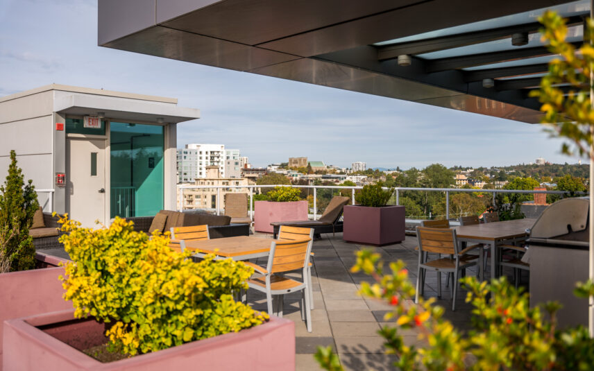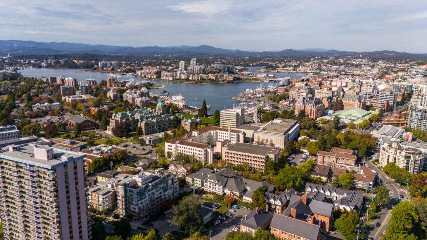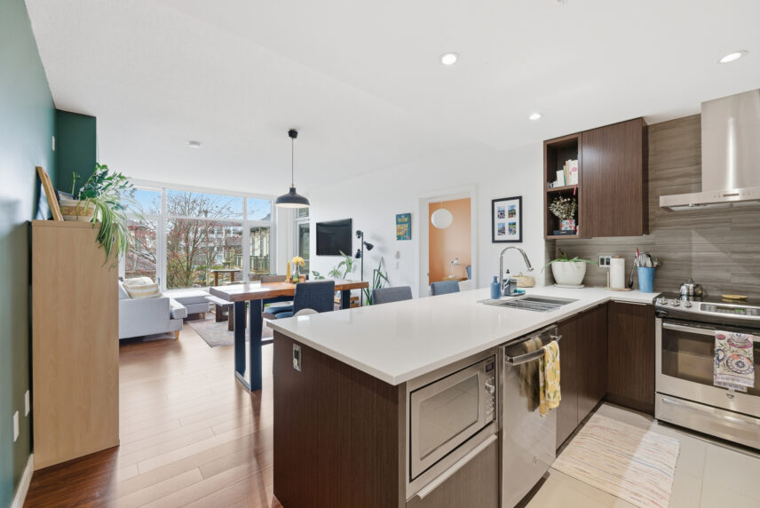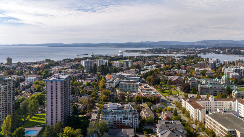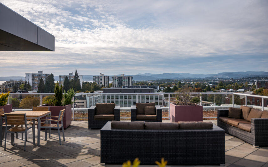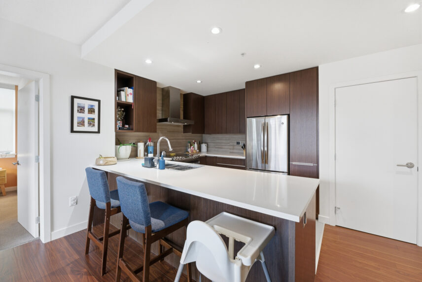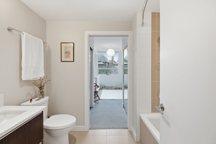 Positioned in one of James Bay’s most livable residential pockets, this modern two-bedroom, two-bath residence at The Duet combines clarity of design with a location that balances walkability, calm, and long-term comfort. Built in 2014 by Chard Developments, the building is set just far enough from downtown to avoid its intensity, while remaining close to Beacon Hill Park, James Bay Village, Dallas Road’s waterfront paths, and the Inner Harbour. The west-facing suite spans approximately 905 sq ft and is notably bright, with open living and dining areas that feel easy and efficient rather than oversized. Large windows look out to low-rise housing, trees, and shared green space, bringing a sense of openness without exposure to busy streets. The layout separates the bedrooms, offering real privacy for daily life or guests. The primary bedroom features a walkthrough closet and its own ensuite, while the second bedroom connects to a cheater ensuite accessible from the hallway, making it ideal as a guest room, office, or shared space. The balcony is well sized for lounging or container gardening, extending the living area outward. The Duet is known for its thoughtful amenities, including secure underground parking, dedicated storage, bike facilities, a dog wash station, and a large shared rooftop patio equipped with seating and dual BBQs, an ideal setting for relaxed evenings without maintenance demands. This is a home that suits those who want quality construction, a reputable building, and a neighbourhood that supports walking and cycling, all without giving up a sense of order and ease near Victoria’s most established urban edges.