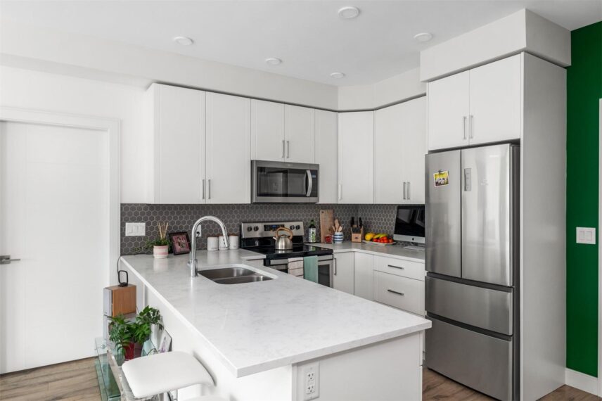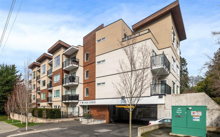 Welcome to Maija London, a sought-after 2019-built complex just steps from the beach! This southwest-facing 2-bed, 2-bath condo offers serene treed views with glimmers of the ocean and a well designed layout featuring separated bedrooms and two balconies. Soak in stunning sunsets and enjoy year-round BBQs! Flooded with natural light, this stylish unit boasts high ceilings and engineered wood flooring throughout, plus heated bathroom tile. The modern kitchen is complete with full-height cabinetry, quartz counters with barstool seating, and sleek stainless appliances. Included is insuite laundry, underground parking, and separate storage. This well-managed building, still under 10-year warranty, welcomes pets with no size restrictions and offers bike storage +more. Centrally located near Victoria General Hospital, you’ll have easy access to dog-friendly parks, the Portage Inlet, E&N Trail, cafes, childcare, and all essentials. Plus, Downtown Victoria and UVic are just a short drive away.
