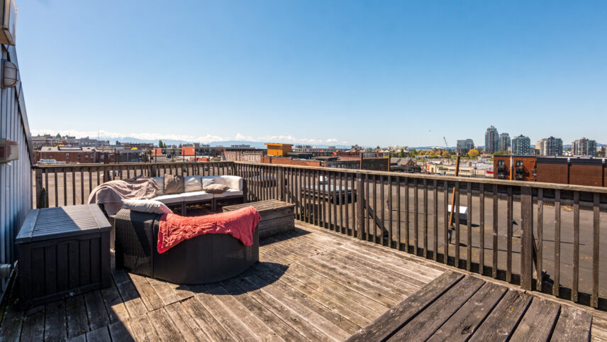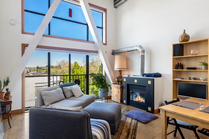 Authentic to the Downtown West Coast lifestyle, here is your rare opportunity to secure a loft style condo, situated by Victoria’s vibrant & historic Chinatown. Split between 2 levels with soaring windows and 16ft ceilings, this unit boasts stylish concrete floors, a gas fireplace, and a spacious primary. The open & airy floor plan makes unparalleled use of its space and is flooded with natural light, plus efficient heating w/gas incl. in strata fee. Many cosmetic and functional improvements: remote operated black out blinds, dimmable LED light fixtures, paint, carpet+more. The popular Chatham Lofts offer 1 block proximity to the picturesque harbour, and an eclectic & emerging neighbourhood of independent businesses, restaurants, and breweries. Enjoy 360° ocean/city views from the rooftop deck. Plus insuite laundry, large in unit & separate storage, no size restrictions on pets, and a well maintained building w/proactive strata. Investment opportunity in this area! Possession flexible