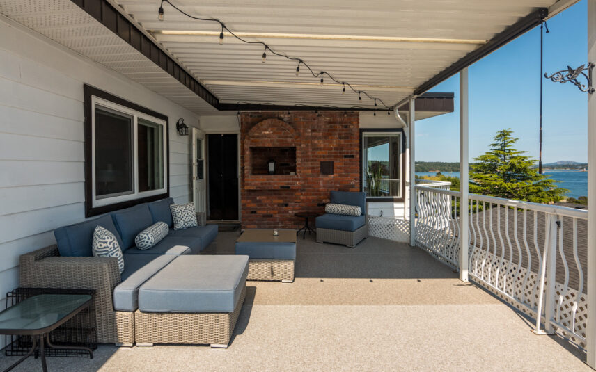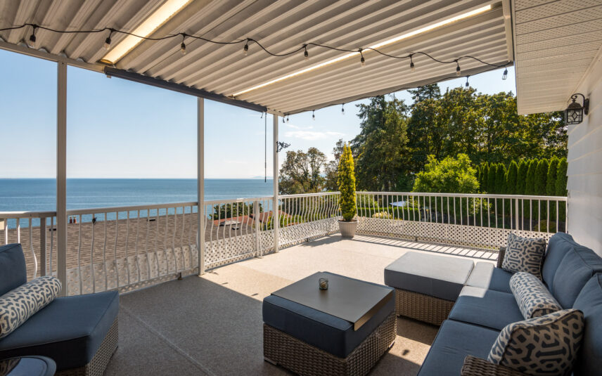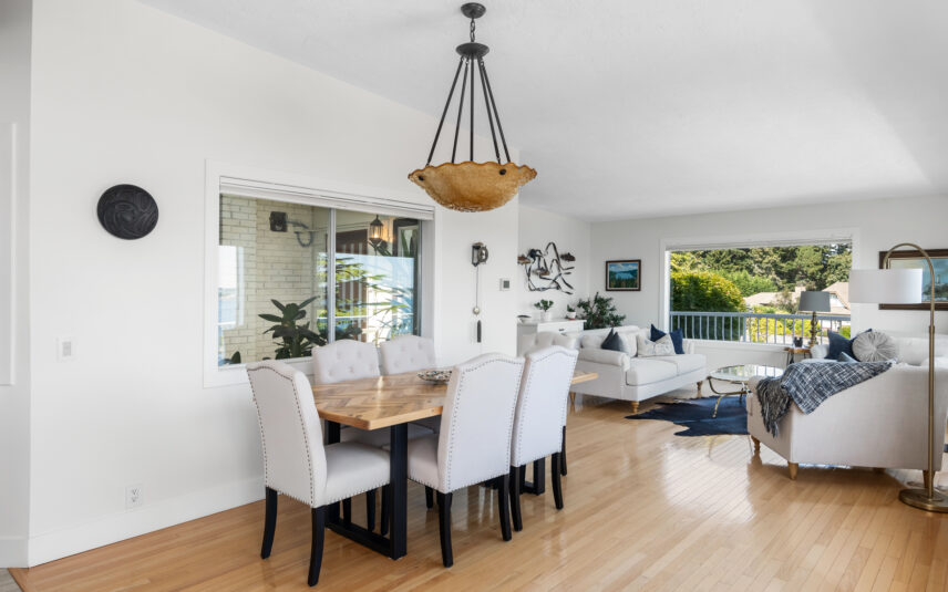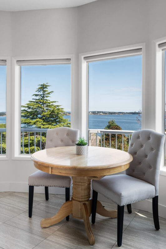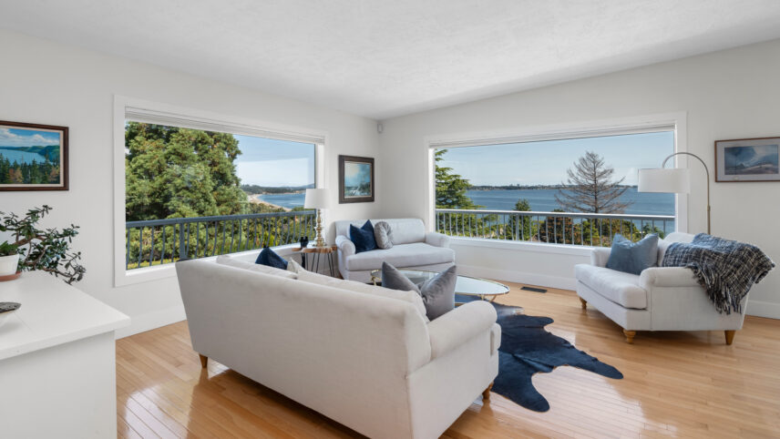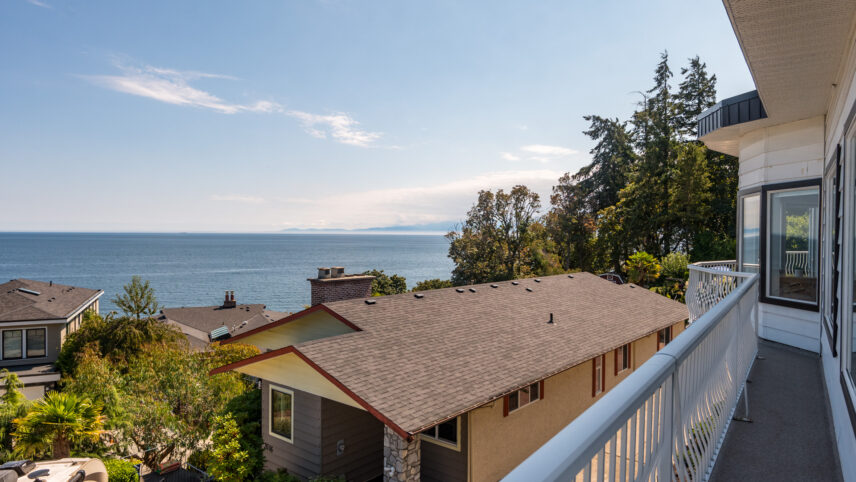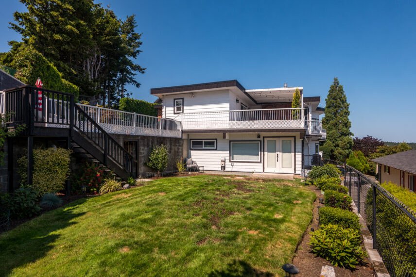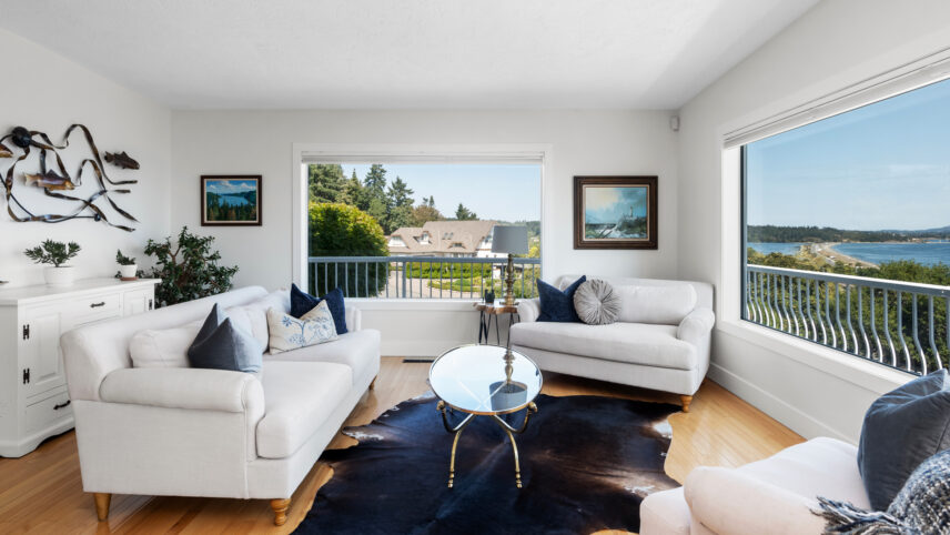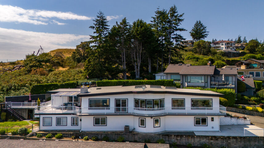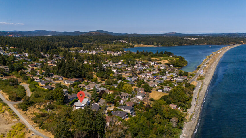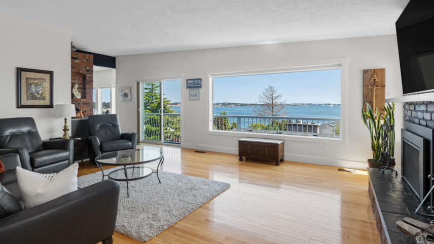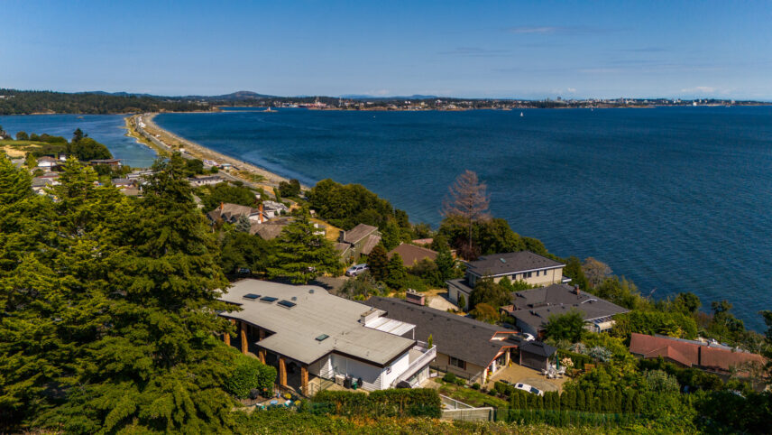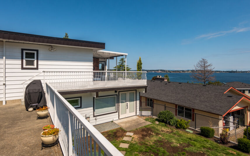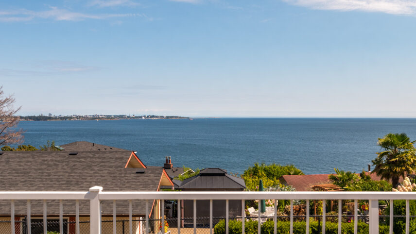 BREATHTAKING OCEAN VIEWS from all principal rooms in this serene, seaside retreat nestled on a quiet cul-de-sac. Marvel at the stunning vistas of passing ships, the Esquimalt Lagoon, Saxe Point, and glimpses of Hatley Castle. The open-concept main level offers bright, expansive windows and seamlessly connects outside to a long wrap-around deck. The rare atrium entrance, adorned with lush greenery, sets the stage for stylish entertaining in the modern kitchen, living, and family rooms. The upper level boasts 2 beds & 2 beautifully updated baths. With ample parking, space for recreational vehicles & separate additional accommodation, this turnkey home offers unmatched flexibility. The lower level can be enjoyed as is, with a family room & office, or easily convert to another bed + den. Pride of ownership shines through meticulous maintenance & extensive updates. Embrace West Coast living at its finest in this unique Colwood home, offering a peaceful retreat with quick access to amenities.