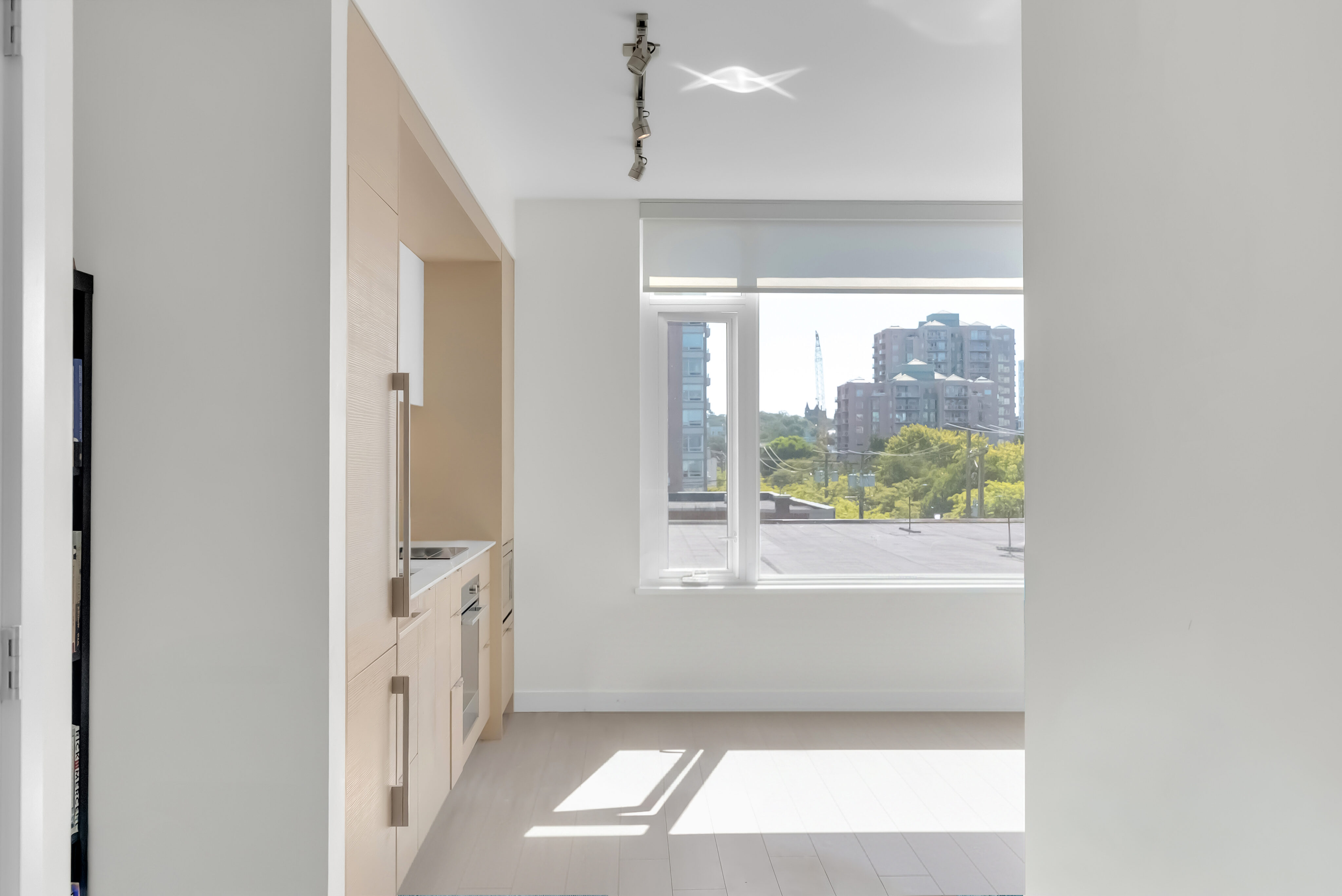 Experience luxury living at Yates on Yates by Chard Developments! This modern, east-facing bachelor suite in a 2020 concrete and steel building offers bright open views, a spacious layout, and a rare full-sized laundry room — all in the heart of Downtown. The gourmet kitchen features premium integrated appliances, an induction cooktop, and soft-close cabinetry. Enjoy contemporary finishes like quartz countertops, wide plank flooring, and a light, versatile color palette to suit any style. Stay comfortable year-round with air heating and cooling, plus heated bathroom floors for cozy mornings. Take advantage of stunning rooftop amenities including BBQs, a fire pit, pet play area, garden, and sweeping 360-degree views of the mountains, water, and city. Walk to groceries, restaurants, movie theatres, and transit within minutes. Pet-friendly and ideal for vibrant urban living.