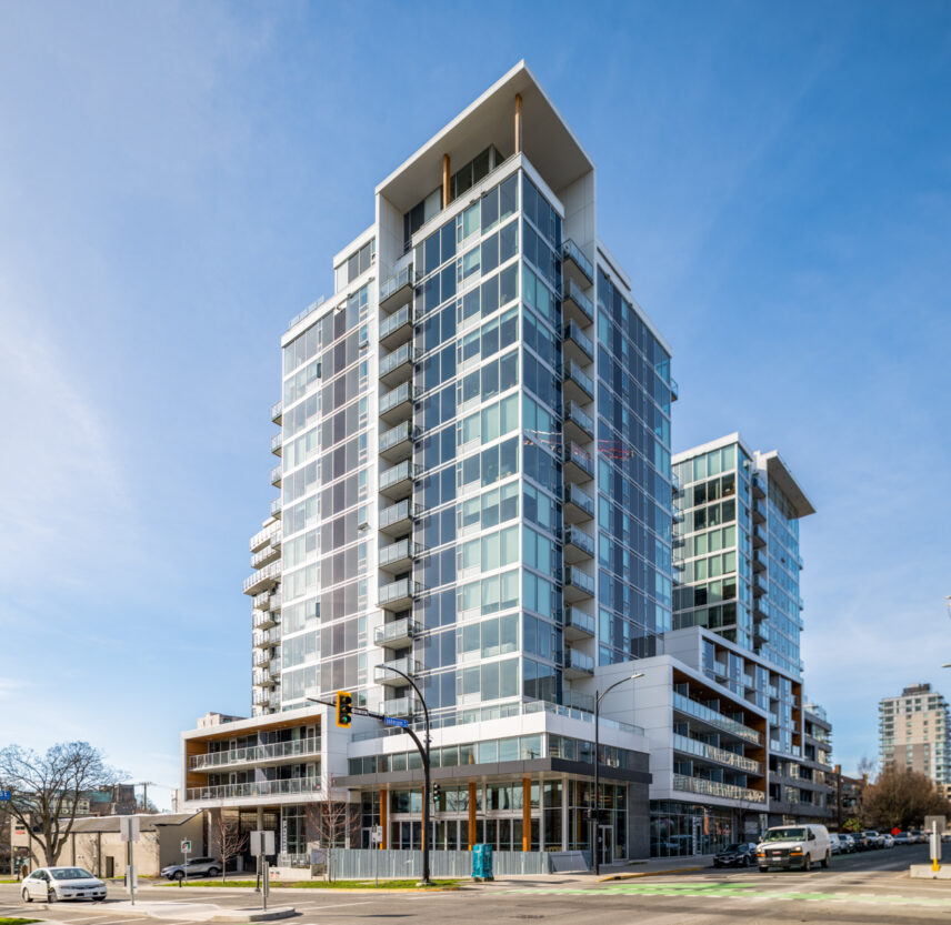 Situated on the 8th floor, this modern 1-bedroom, 1-bath condo at 989 Johnson offers vibrant city views and an ideal urban lifestyle in Downtown Victoria. Built in 2019, this steel-and-concrete residence in Harris Green features engineered oak hardwood floors, quartz countertops, and custom cabinetry. The kitchen boasts premium appliances and smart storage solutions, while a private balcony provides a peaceful outdoor retreat. This pet-friendly unit allows for one dog or one cat. With underground parking, a storage locker, and secure bike storage, the property is designed for convenience. Residents also enjoy access to a south-facing courtyard with a yoga deck, discounted rates at Forge Fitness, and the Nordic Spa’s wellness circuit. Steps from boutique shops, cafes, and the waterfront, this well maintained condo perfectly embodies modern urban living.
