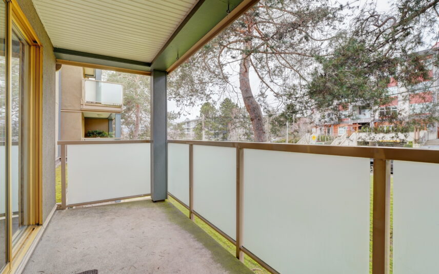 This wonderful 1 bedroom, 1 bath condo offers a pleasant blend of comfort + convenience. Set on a quiet road next to Rutledge Park in Saanich East with an abundance of light throughout its almost 800 sq ft of interior. You’ll be impressed with the tasteful upgrades that include bathtub and surround, lighting + newer kitchen offering updated countertops, cabinetry and full stainless appliance package (dishwasher/microwave). Generous floorplan with separate dining room featuring built-in shelving, spacious living area, large bedroom, walk-in pantry + extended balcony overlooking the landscaped entrance. You’ll also enjoy extra space to gather in the common billiards room and lounge area, or utilize the fitness room and workshop. Ideally set in residential Saanich, with nearby groceries and amenities at Thrifty Foods plus easy transit into Downtown Victoria. Conveniently includes parking stall, separate storage locker + common washer/dryer facilities. One year minimum. Sorry, no pets.