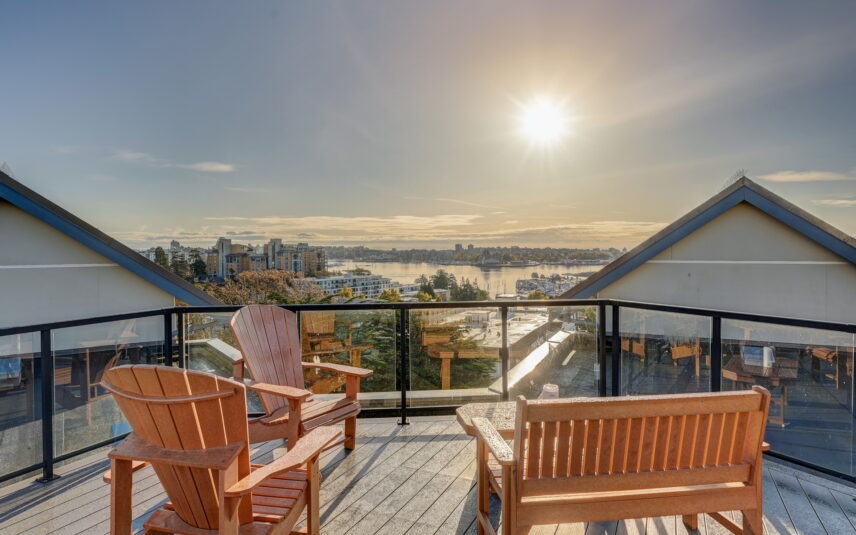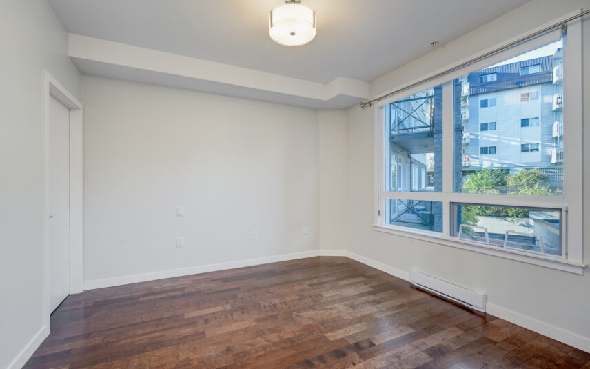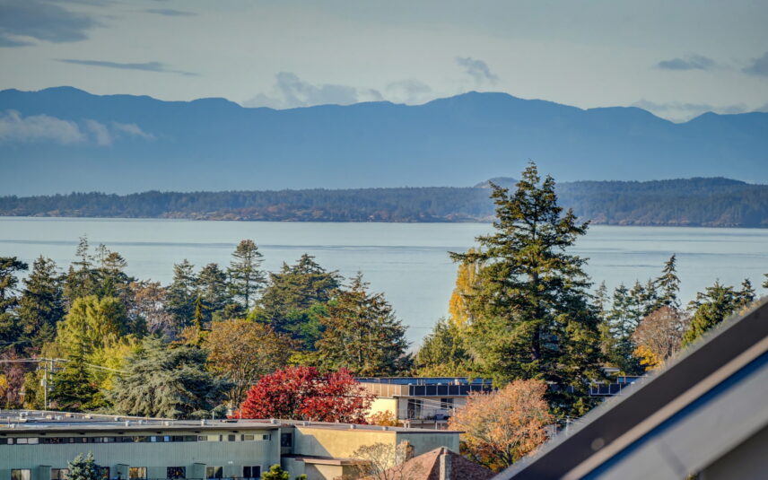 Reside at the popular Skyline in this 1 bedroom plus large den, 1.5 bath condo near beautiful Saxe Point Park in Esquimalt. Offering a wonderful open layout with a sleek kitchen equipped with quartz countertops, stainless appliance package (w/microwave/dishwasher), custom cabinetry + eating bar. Add in 9’ ceilings, walk-in closet, ample room for your home office area + additional space outdoors on your exclusive balcony and you have a home that makes you feel proud. Relax and gather on the fantastic common rooftop patio that provides ocean views. Or stroll the vibrant neighbourhood that offers the Archie Browning Sports Centre, Saxe Point Public House, cafés, library, parks and groceries, with only a short bike ride or drive into Downtown Victoria.Conveniently includes insuite washer/dryer, underground parking + separate storage locker. One year minimum. Note: small pet may be considered.