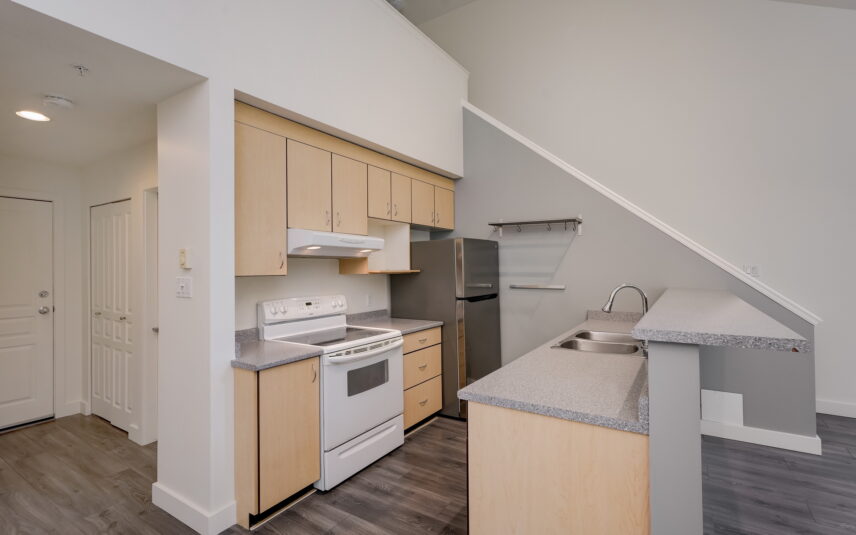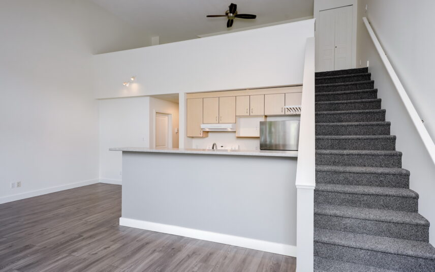 Live right Downtown Victoria in the heart of the Harris Green district in this loft-style 1 bedroom+den, 1 bath condo. Unique layout spread over two levels with dramatic 16’ ceilings, oversized windows streaming in natural light, upper level bedroom, walk-in closet, home office and/or room for guests in the den plus a sleek kitchen with breakfast bar. Urban style in one of the most walkable neighbourhoods in the city – stroll to cafes, gyms, restaurants, grocers and both Fernwood and Cook St Villages. No need for a car – no onsite parking. A well-maintained home with fresh paint throughout + new carpet on loft stairs. Conveniently includes balcony, separate storage locker, insuite washer/dryer + dishwasher. One year minimum. Sorry, no pets.